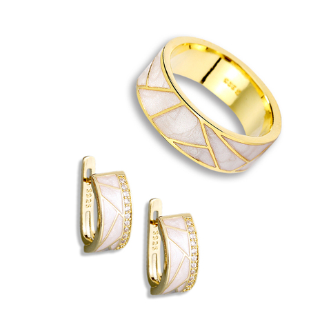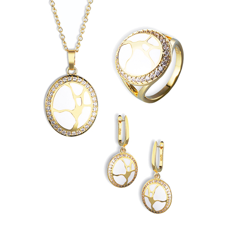 Ensemble de bijoux exquis en argent émail blanc-Design simple plaqué or bague collier boucle d'oreille pour les femmes pour le cadeau
