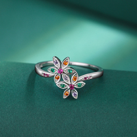 Bijoux élégants en argent Sterling 925 créativité en forme de fleur plein de Zircon coloré bague bijoux de fête pour femmes