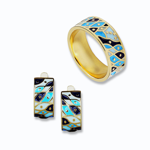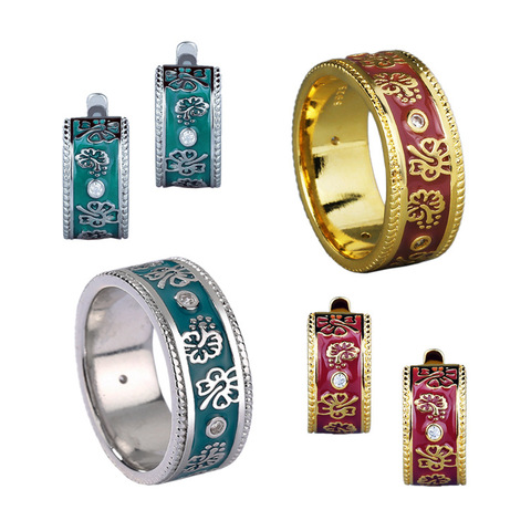 Bijoux en émail Design amusant bague en émail bleu rouge exotique ensemble de boucles d'oreilles bijoux de mariage