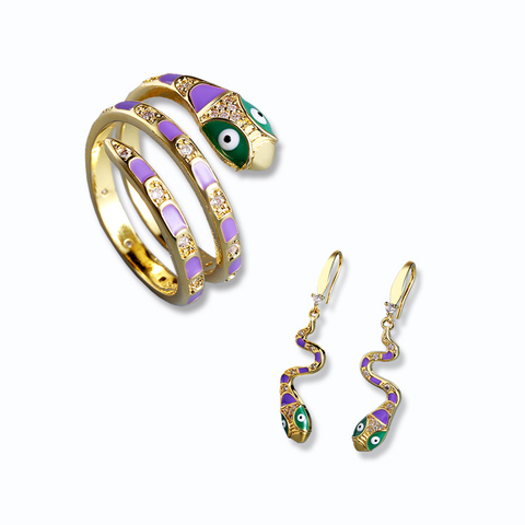 Ensemble de bijoux en émail coloré Unique exagérer forme de serpent fait à la main bijoux en émail bague collier boucle d'oreille pour les femmes