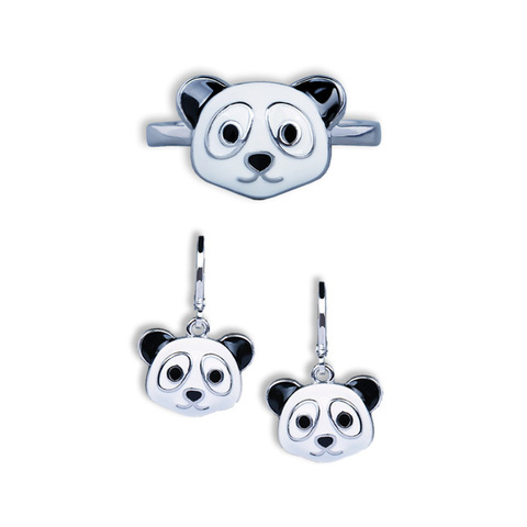 Ensemble de bijoux et boucles d'oreilles en émail noir et blanc pour femme, mignon, dessin animé, Animal Panda, nouvelle collection KYRA01652-KYED0819