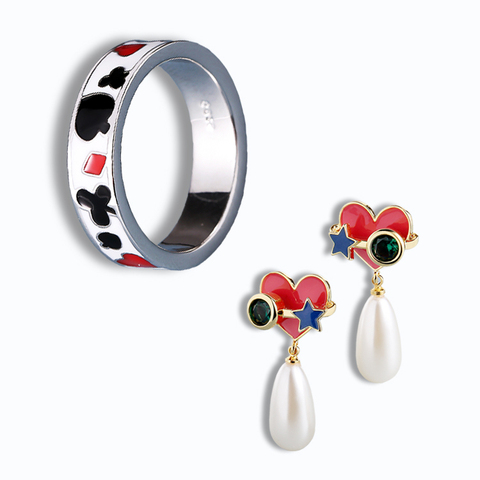 Ensemble de bijoux en émail Design simple Bague de poker exquise et boucles d'oreilles en forme de coeur Bijoux en émail pour femmes