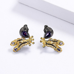 KYED0619 Antigo Banhado A Ouro Flor Gota Brincos Jóias Partido das Mulheres com Ametista Artificial para Presentes